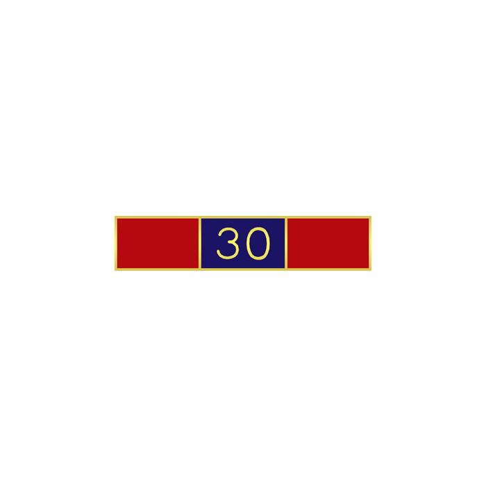 Handsome three section commendation bar with the number 30 in the center, great way to recognize thirty years of service. The wording / text is in the die and cannot be changed.