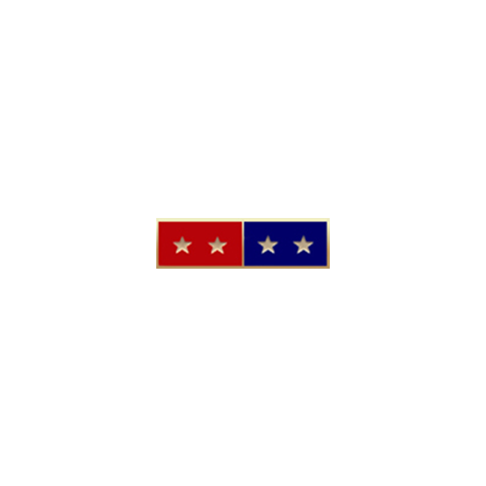 Handsome two section commendation bar with two stars in each section, recognize four or 20 years of service. The stars are built into the die and cannot be changed.