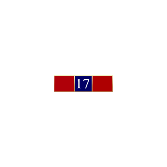 This impressive three section bar with a 17 in the middle section can be customized with your selection of colors to symbolize exemplary service, appointment to a group or team, 17 years of service and much more. The number is in the die and cannot be changed.
