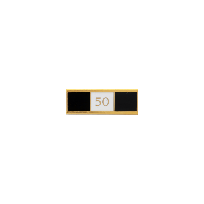 This impressive three section bar with a 50 in the middle section can be customized with your selection of colors to symbolize exemplary service, appointment to a group or team, 50 years of service and much more. The number is in the die and cannot be changed.