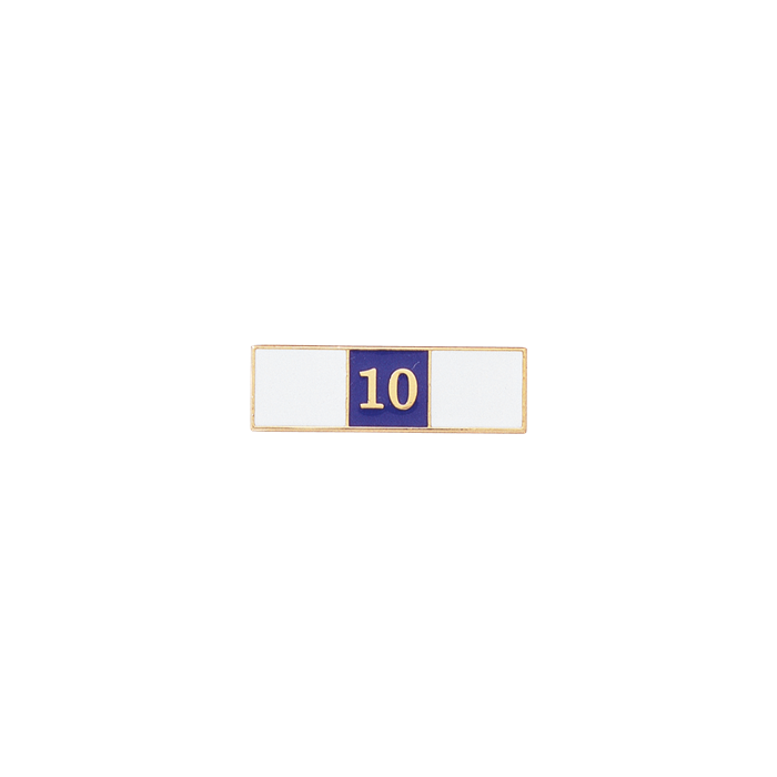 This impressive three section bar with a 10 in the middle section can be customized with your selection of colors to symbolize exemplary service, appointment to a group or team, 10 years of service and much more. The number is in the die and cannot be changed.