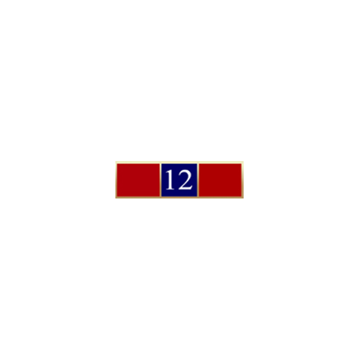 This impressive three section bar with an applied 12 in the middle section can be customized with your selection of colors to symbolize exemplary service, appointment to a group or team, 12 years of service and much more. The number is in the die and cannot be changed.