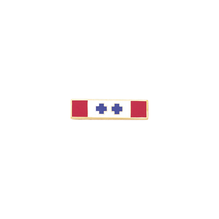 This impressive three section bar has two crosses in the center section and can be customized colors of your choice to symbolize exemplary service, appointment to a group or team, two or ten years of service, and much more. The 3/8" version of this bar is A10886-A. For one cross, use model A8074. For three crosses, use model A8074-B. For four crosses, use model A8074-C. The symbols are built into the die and cannot be changed.