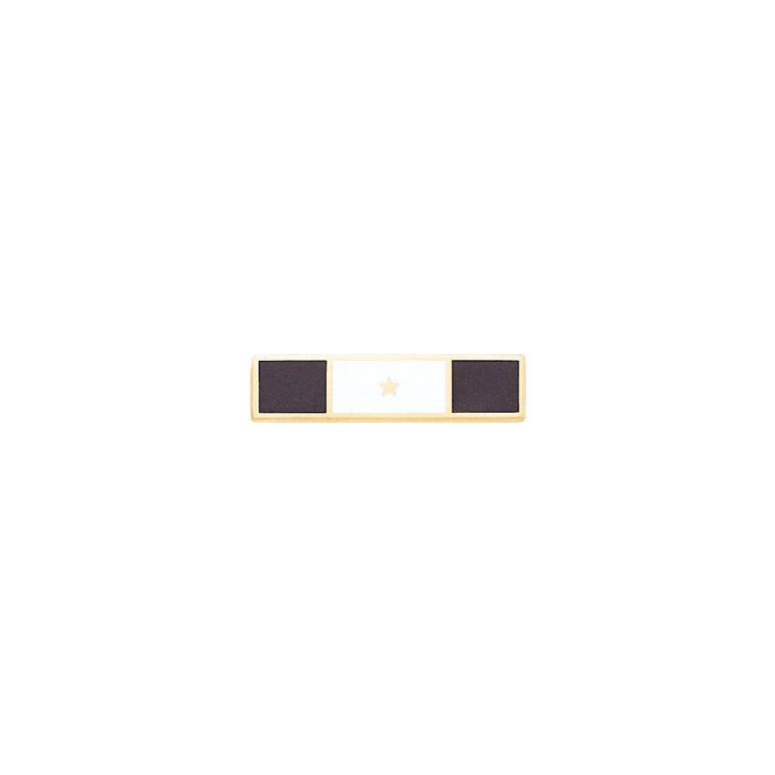 This impressive three section commendation bar has a star in the center section and can be customized with the color of your choice to symbolize exemplary service, appointment to a group or team, or one or five years of service and much more. See model A8252-A for a slightly larger star. The star(s) are built into the die and cannot be changed.