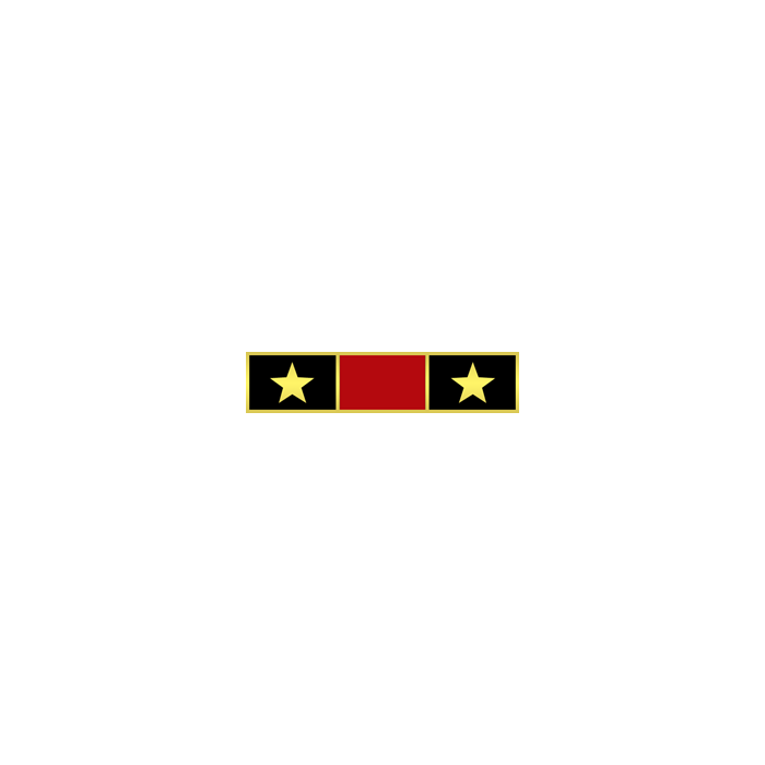 This impressive three section commendation bar has two stars and can be customized with the color of your choice to symbolize exemplary service, appointment to a group or team, or two or ten years of service and much more. For the larger 3/8" bar, use model A7142-A, The star(s) are built into the die and cannot be changed.
