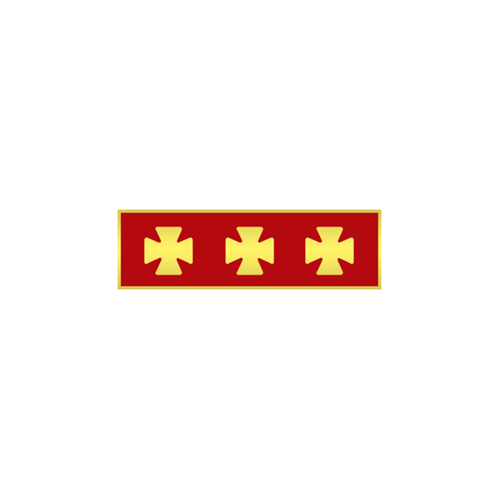 This impressive commendation bar has three Maltese Crosses and can be customized with the color of your choice to symbolize exemplary service, appointment to a group or team, or two or ten years of service and much more. If this bar is needed to fit into a bar holder, use model A10804 (3/8"). The symbol(s) are built into the die and cannot be changed.
