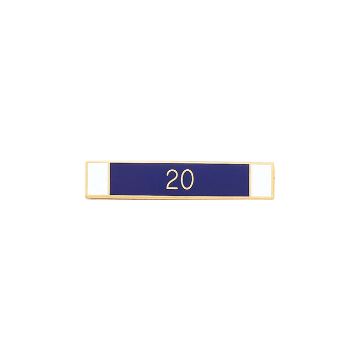 This impressive three section bar has a 20 in the middle section can be customized with your selection of colors to symbolize exemplary service, appointment to a group or team, 20 years of service and much more. The number(s) are built into the die and cannot be changed.