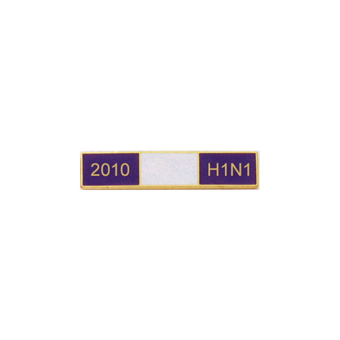 Three section commendation bar with the lettering 2010 and H1N1 in the outer sections. The wording / text is in the die and cannot be changed.