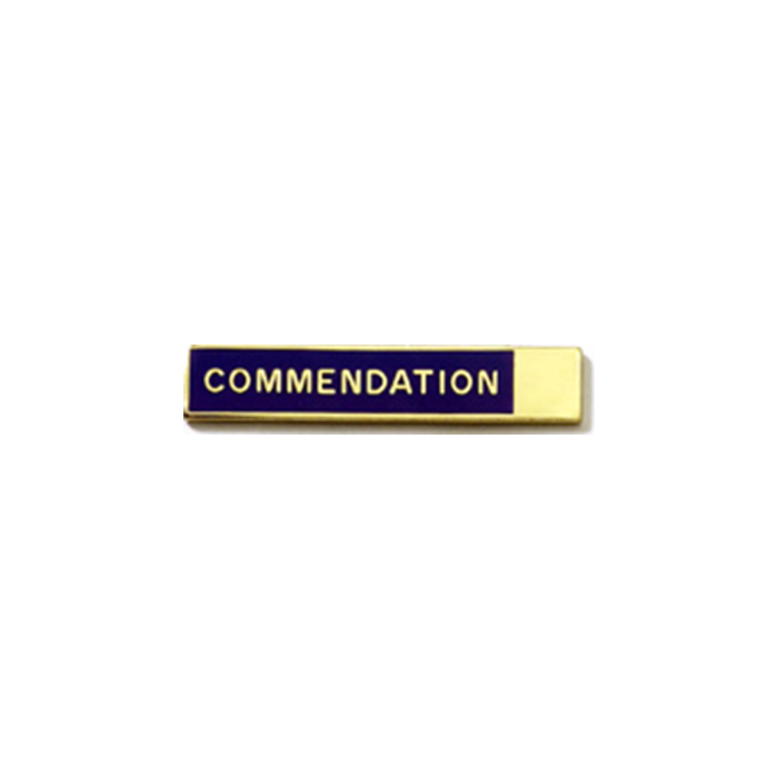 Exquisite one section commendation award - a distinguishing symbol of courage, and strength of mind, in the face of danger to protect life. Also available in a 1-3/8" (1.375") Length bar (A12572). The wording / text is in the die and cannot be changed.