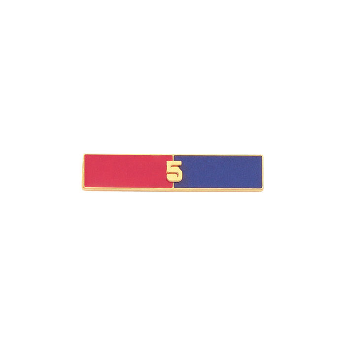 This impressive two section bar can be customized with your selection of colors and an applied letter or number to symbolize exemplary service, appointment to a group or team, and much more. The hole / dot behind the applied figure is built into the die and cannot be changed.