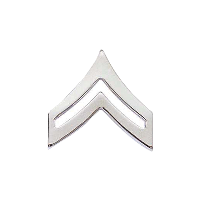 Military Corporal Chevron. Sold In Pairs. Available in gold or silver with clutch back attachment(s).