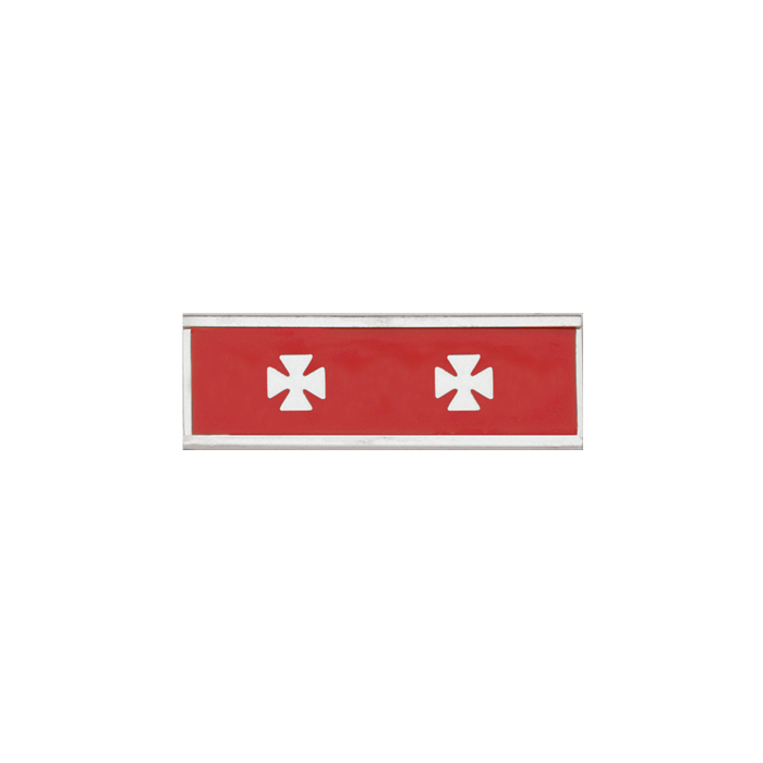 This handsome commendation bar with two Maltese Crosses commemorates ten years of service! Not Sold In Pairs.