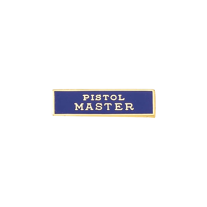 Quality Pistol Master enamel marksmanship bar. This stunning bar can take the enamel color of your choice. The wording is in the die and cannot be changed.