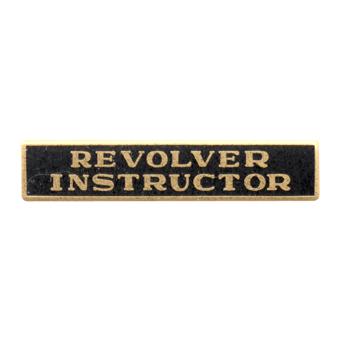 Quality Revolver Instructor enamel marksmanship bar. This stunning bar can take the enamel color of your choice. The wording is in the die and cannot be changed.