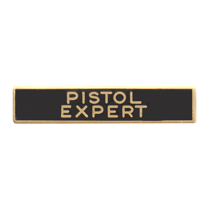Quality Pistol Expert enamel marksmanship bar. This stunning bar can take the enamel color of your choice. The wording is in the die and cannot be changed.