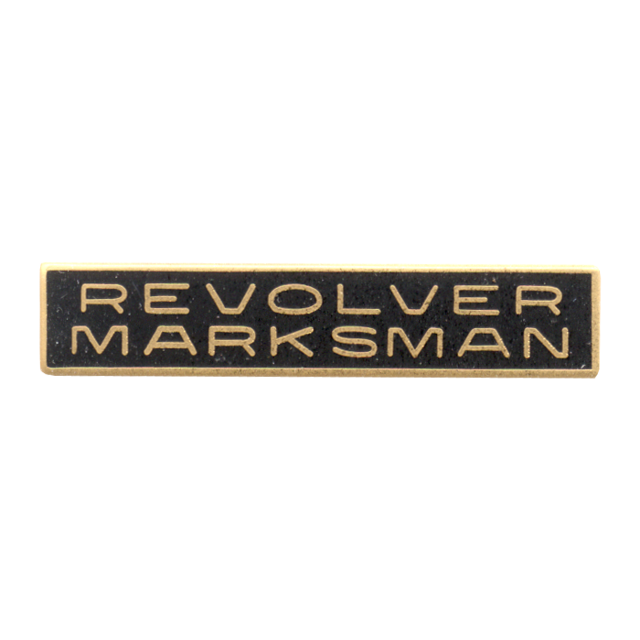 Quality Revolver Marksman enamel marksmanship bar. This stunning bar can take the enamel color of your choice. The wording is in the die and cannot be changed.