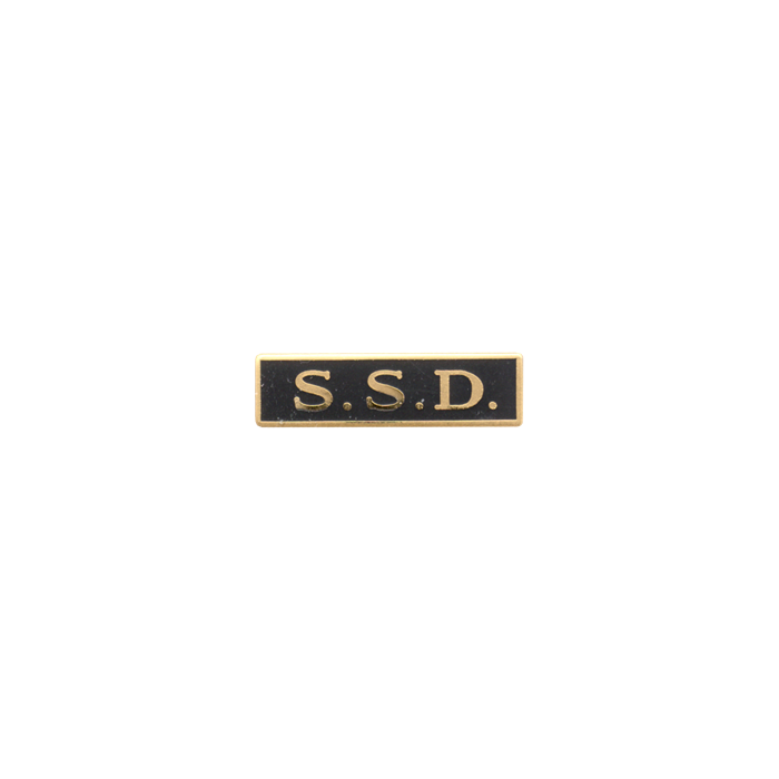 Quality S.S.D. enamel marksmanship bar to mean Special Services Division, School Safety Division, or more. This stunning bar can take the enamel color of your choice. The wording is in the die and cannot be changed.