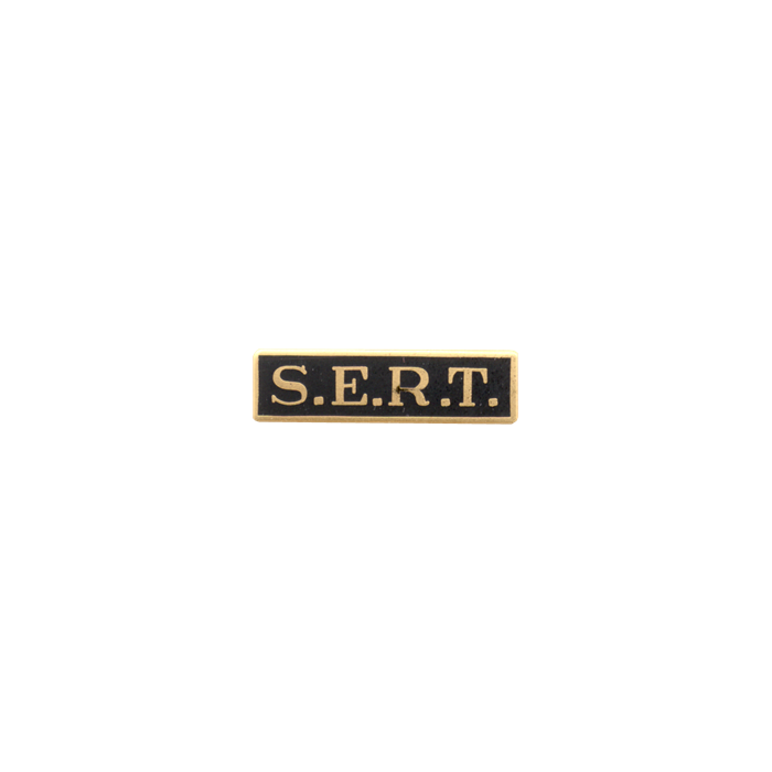 Quality Special Emergency Reaction Team (S.E.R.T.) enamel marksmanship bar. This stunning bar can take the enamel color of your choice. The wording is in the die and cannot be changed.