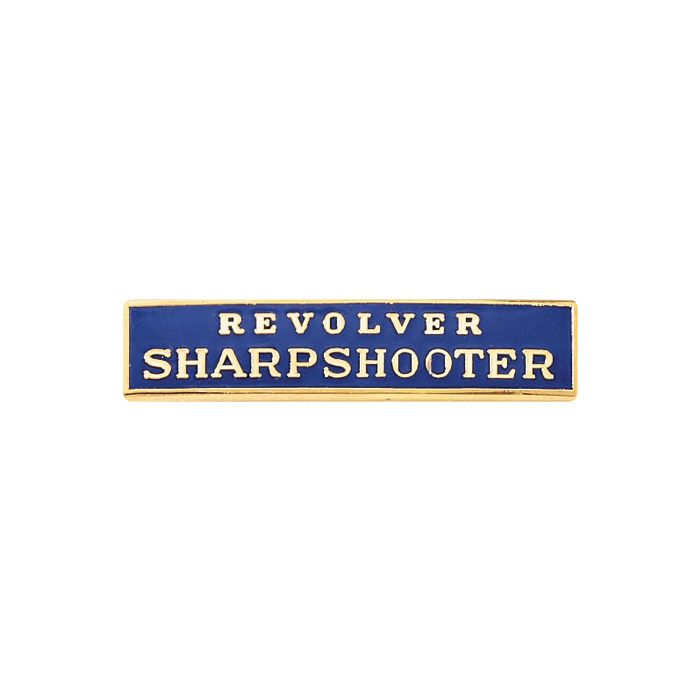 Quality Revolver Sharpshooter enamel marksmanship bar. This stunning bar can take the enamel color of your choice. The wording is in the die and cannot be changed.