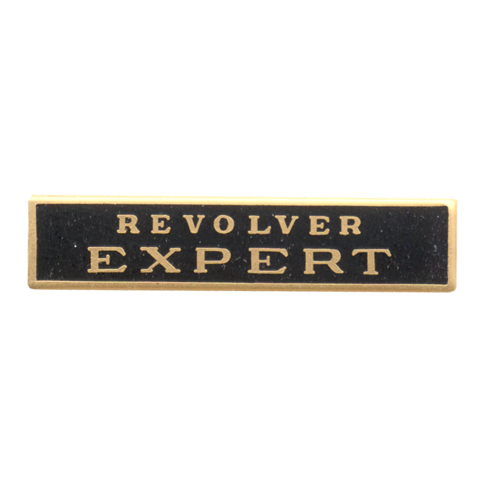 Quality Revolver Expert enamel marksmanship bar. This stunning bar can take the enamel color of your choice. The wording is in the die and cannot be changed.