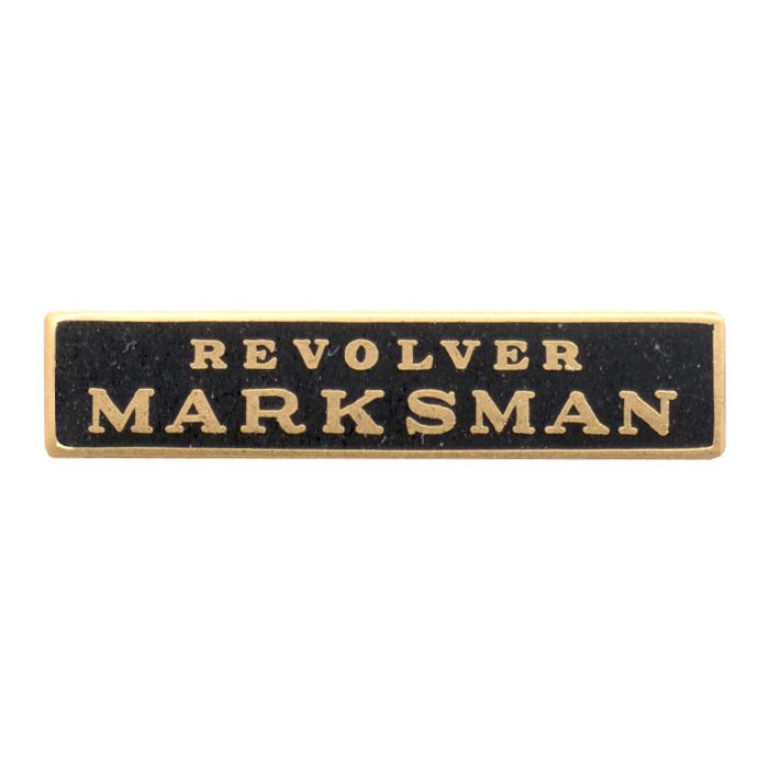 Quality Revolver Marksman enamel marksmanship bar. This stunning bar can take the enamel color of your choice. The wording is in the die and cannot be changed.