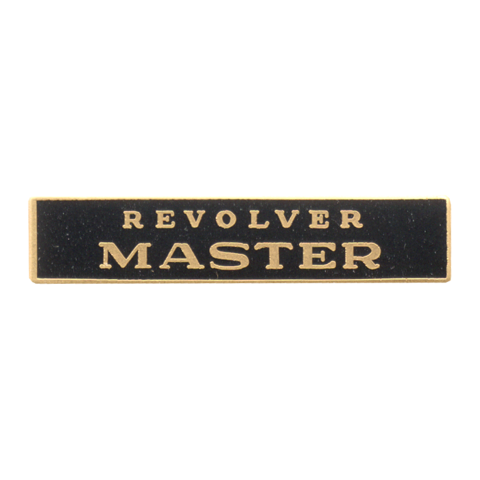 Quality Revolver Master enamel marksmanship bar. This stunning bar can take the enamel color of your choice. The wording is in the die and cannot be changed.