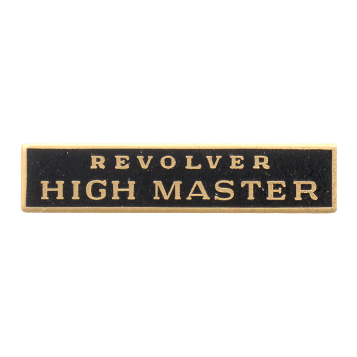 Quality Revolver High Master enamel marksmanship bar. This stunning bar can take the enamel color of your choice. The wording is in the die and cannot be changed.