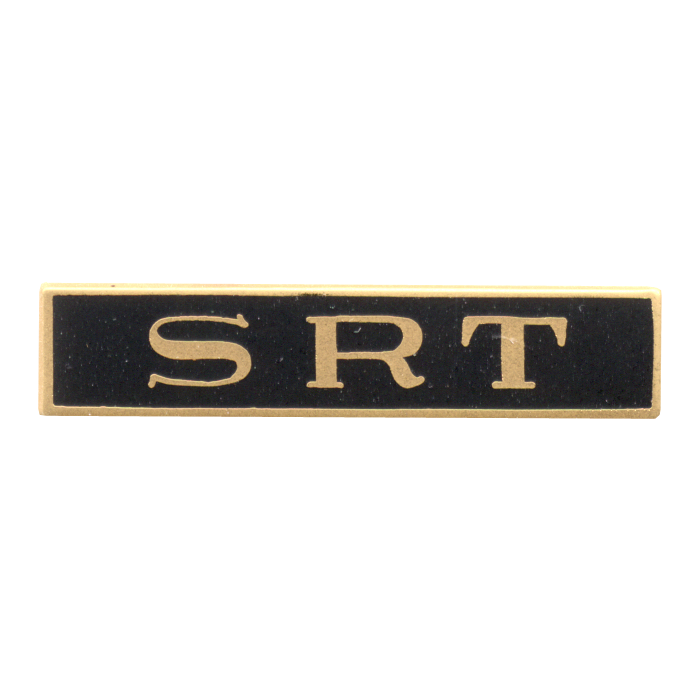 Quality Special Response Team (SRT) enamel marksmanship bar. This stunning bar can take the enamel color of your choice. The wording is in the die and cannot be changed.