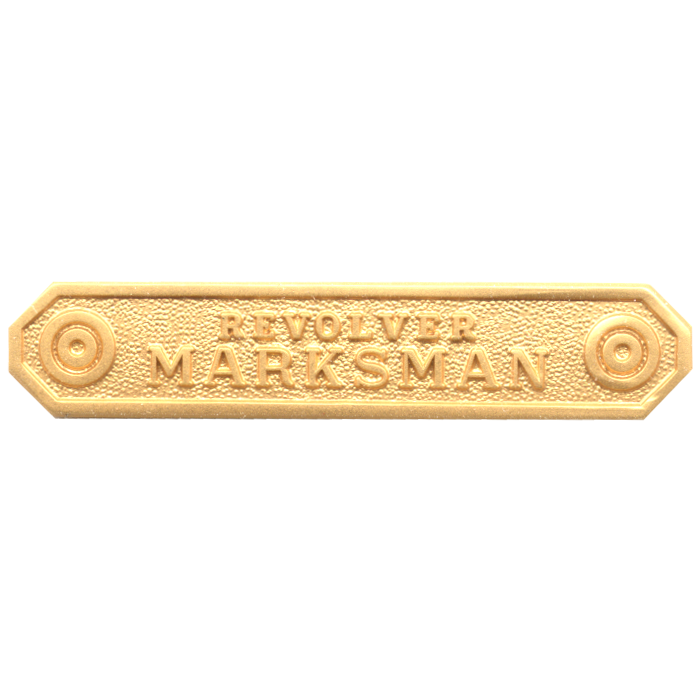 Quality Revolver Marksman enamel marksmanship bar. This stunning bar can take the enamel color of your choice. The wording is in the die and cannot be changed.