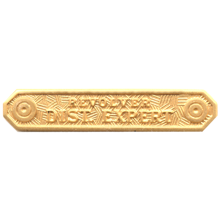 Quality Revolver Distinguished Expert enamel marksmanship bar. This stunning bar can take the enamel color of your choice. The wording is in the die and cannot be changed.