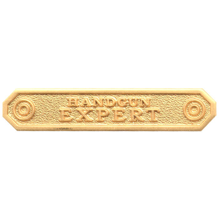Quality Handgun Expert enamel marksmanship bar. This stunning bar can take the enamel color of your choice. The wording is in the die and cannot be changed.