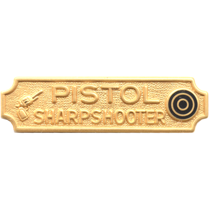 Quality Pistol Sharpshooter enamel marksmanship bar. This stunning bar can take the enamel color of your choice. The wording is in the die and cannot be changed.