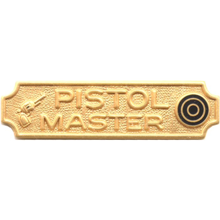 Quality Pistol Master enamel marksmanship bar. This stunning bar can take the enamel color of your choice. The wording is in the die and cannot be changed.