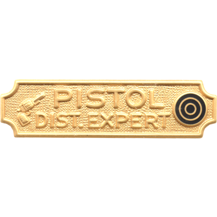 Quality Pistol Distinguished Expert enamel marksmanship bar. This stunning bar can take the enamel color of your choice. The wording is in the die and cannot be changed.