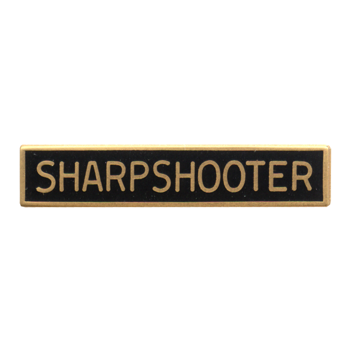 Quality Sharpshooter enamel marksmanship bar. This stunning bar can take the enamel color of your choice. The wording is in the die and cannot be changed.