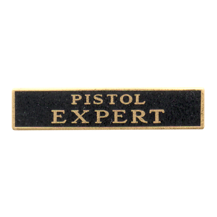 Quality Pistol Expert enamel marksmanship bar. This stunning bar can take the enamel color of your choice. The wording is in the die and cannot be changed.
