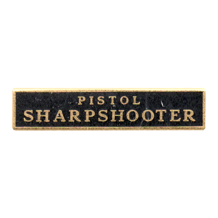 Quality Pistol Sharpshooter enamel marksmanship bar. This stunning bar can take the enamel color of your choice. The wording is in the die and cannot be changed.