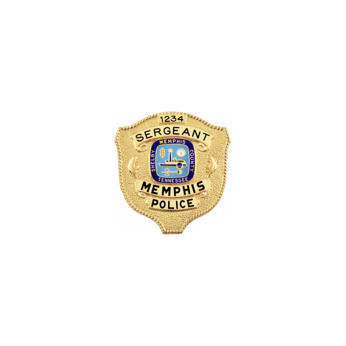 Memphis, Tennessee rank badge. Only the top two panels can be engraved. The other engraving is in the die and cannot be changed.