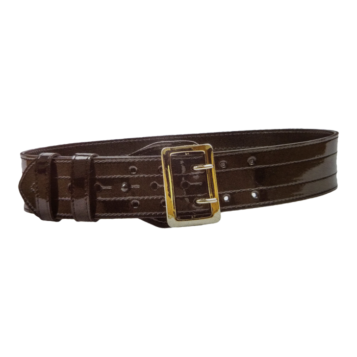 Style: 8001. Sam Brown Leather Belt with 4 row stitching. Available in Plain and High Gloss finishes. 2-1/4" width. Weight is 12-14 oz.