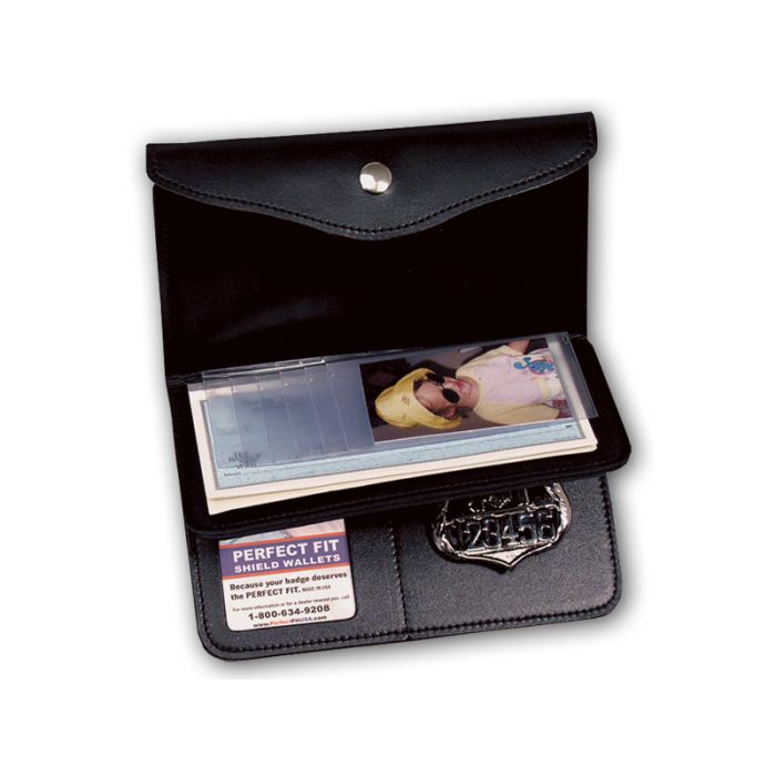Style: 900-W. Made from top grain leather with turned and stitched corners for a high quality finish. Some of its prominent features are the money pouch, plastic card / picture inserts, the badge well concealed on the right as well as the plastic ID slot.