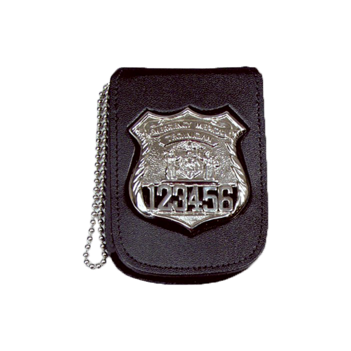 Styles: 706-1, 706-2, 706-3, 706-4. This holder is made from genuine leather and can be cut exactly to fit any badge style. It is designed with velcro closure and intended to be worn primarily around the neck. This holder does not include heavy duty steel belt clip. It comes with ID/Credential section on the back and 30" beaded chain. PF706-1 is available in Pink Leather for Breast Cancer Awareness.