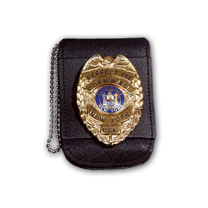 Styles: PF704-MH, PF705-MH. This neck chain holder is made from genuine duty leather and can be used with any badge with a pin & safety catch attachment. This holder is uniquely designed with magnetic closure and intended to be worn around the neck. It has an ID/Credential section on the back. 30" beaded chain is included. PF705-MH is available in Pink Leather for Breast Cancer Awareness.