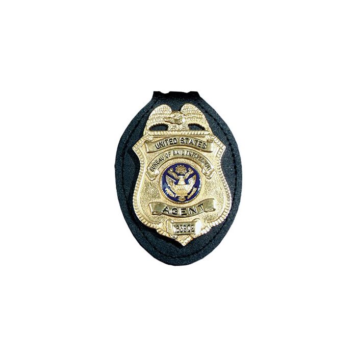 Style: PF715-O. This high quality belt clip badge holder is best used with a teardrop or oval shaped badge with pin & safety catch. It is made from genuine leather and with a high quality metal belt clip attachment. It comes with a Velcro closure and can be supplied with a pocket and 30" beaded chain at an additional charge.