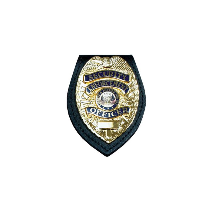 Style: PF715-T. This high quality belt clip badge holder is best used with a teardrop or oval shaped badge with pin & safety catch. It is made from genuine leather and with a high quality metal belt clip attachment. It comes with a Velcro closure and can be supplied with a pocket and 30" beaded chain at an additional charge.