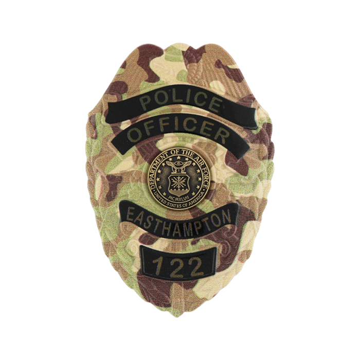 Similar to our B899 badge, this beauty features four broad areas for lettering plus impressive detail throughout!