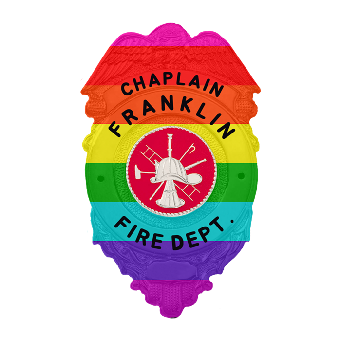 One of our most popular badge styles, this badge has four spacious areas for lettering plus eye-catching detailing!