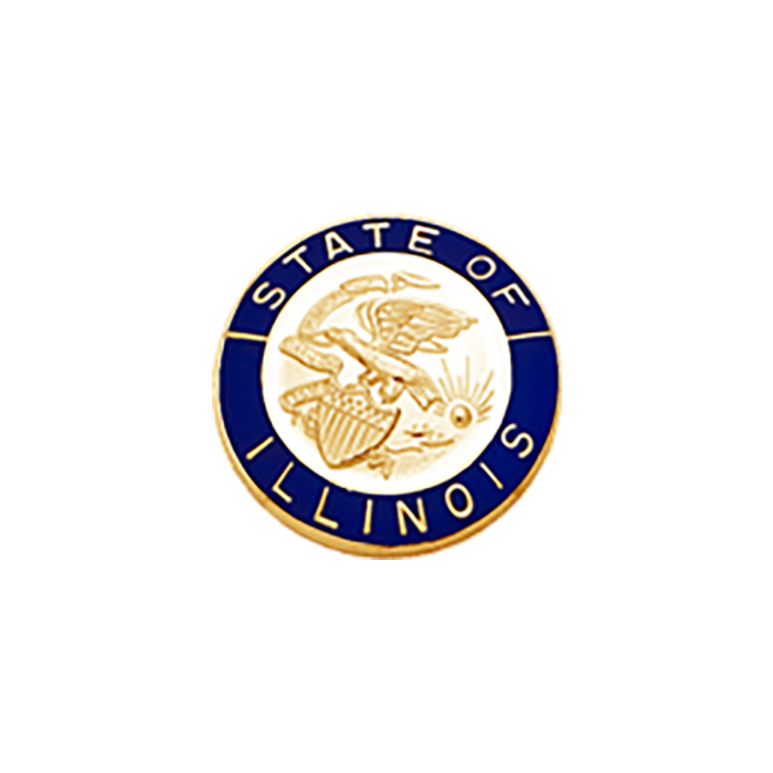 Illinois Blue Rim Collar Seal Insignia. Available in several finishes and sizes. Available in 15/16" (0.9375"), 7/8" (0.875"), 3/4" (0.75"), 5/8" (0.625"), and 1/2" (0.5")