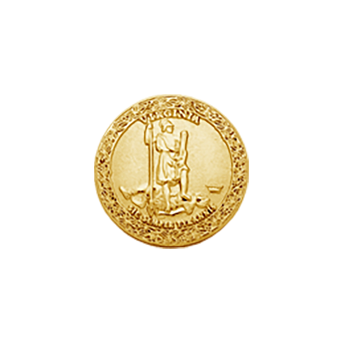 Virginia State Plain No Rim Collar Seal Insignia. Available in several finishes and sizes. Available in 15/16" (0.9375"), 7/8" (0.875"), 3/4" (0.75"), 5/8" (0.625"), and 1/2" (0.5")