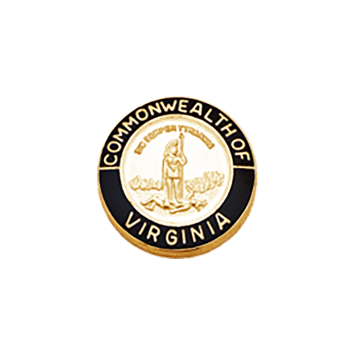 Virginia Commonwealth Black Rim Collar Seal Insignia. Available in several finishes and sizes. Available in 15/16" (0.9375"), 7/8" (0.875"), 3/4" (0.75"), 5/8" (0.625"), and 1/2" (0.5")