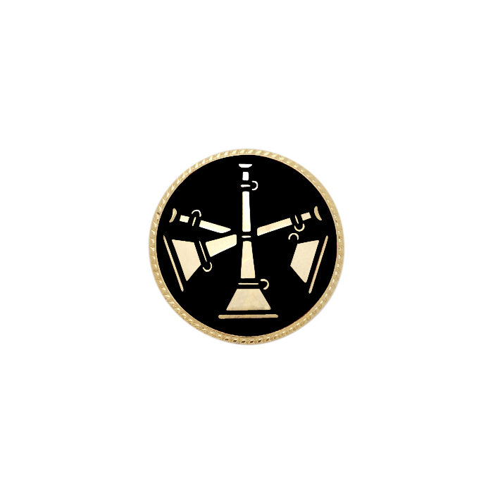 Three Fire Bugles collar insignia with colored enamel background. For red enamel, use model C177FRE. For blue enamel, use model C177FBE. Available in 15/16" (0.9375"), 7/8" (0.875"), 3/4", 5/8" (0.625"), and 1/2".